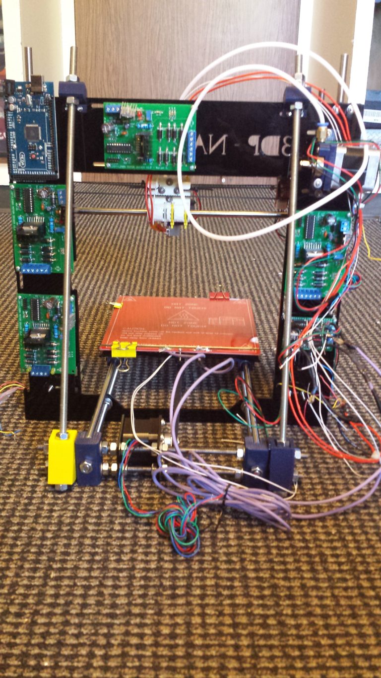At Stanford I kept having to wait for lab 3D printers to become free, so I decided to just build myself a personal one with the same print volume as a standard commercial desktop printer. Using a reference open-source design, I designed most of the mechanical components and the electronics from scratch. A complete CAD model was first created in SolidWorks and then manufactured through laser cutting and 3D printing, although I tried maximize the use of standard off-the-shelf components. The custom stepper motor drivers and other power electronics were designed in Eagle. The printer used a version of Marlin (an open-source 3D printer firmware). At this point, this is an outdated design but still a great mechatronics learning opportunity!